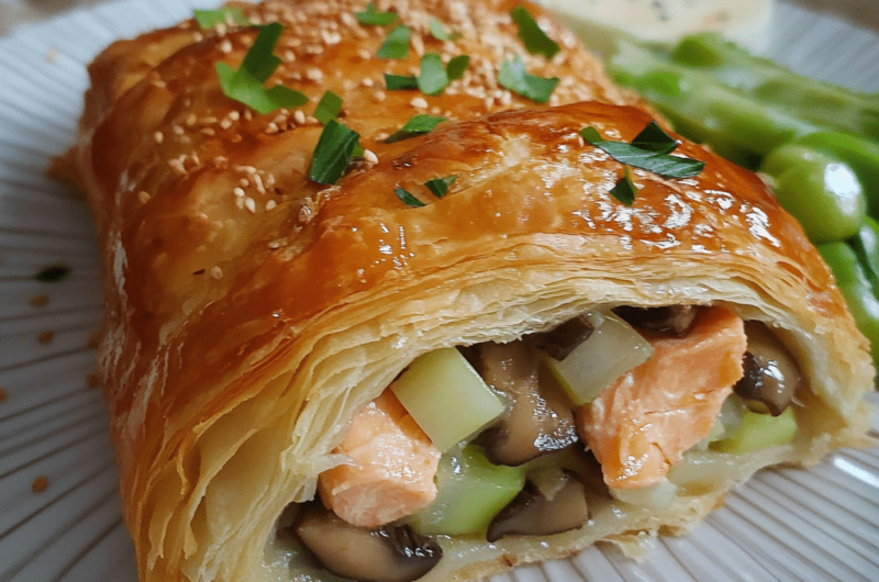 Je me souviens de la première fois où j’ai préparé ce Feuilleté saumon poireaux champignons pour un dîner chez des amis. C’était un plat simple à préparer, mais tout le monde a été époustouflé par la richesse des saveurs et la texture fondante du saumon. Depuis, ce feuilleté est devenu une recette incontournable pour les repas un peu plus raffinés, et c’est toujours un plaisir de le voir disparaître en un clin d’œil. Ce que j’adore, c’est que la pâte feuilletée donne l’impression que vous avez passé des heures en cuisine, alors qu’en réalité, elle est super rapide à faire.