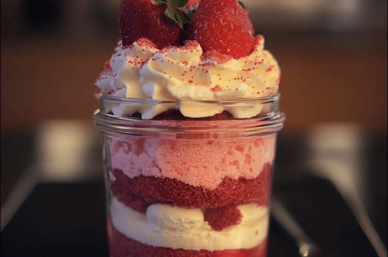 Ce gâteau fraises bocal est une recette parfaite pour un dîner en amoureux ou pour partager un moment convivial lors d’un pique-nique de Saint-Valentin. C’est un dessert léger, sucré, et plein de saveurs de saison, idéal pour conclure un repas avec douceur et simplicité. Croyez-moi, ce dessert va ravir votre cœur et celui de votre moitié!