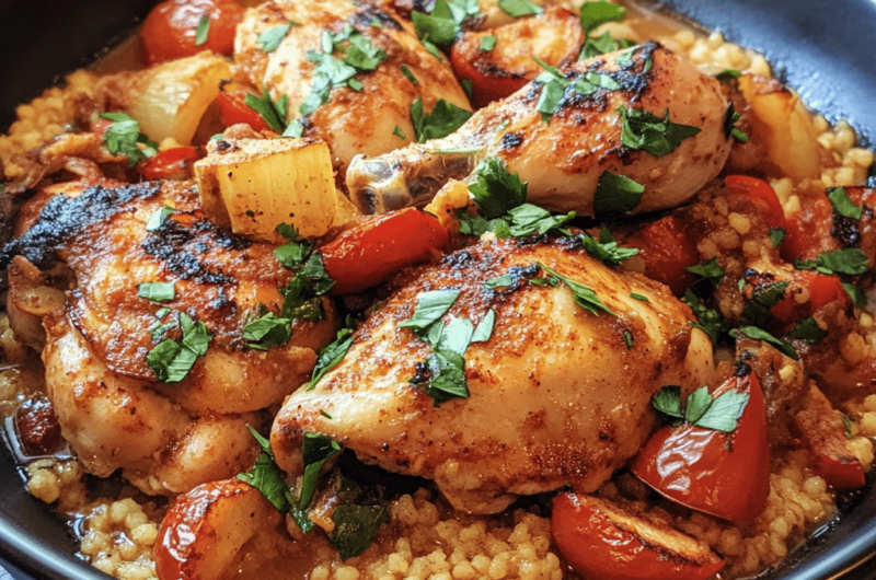 Le Poulet façon couscous est un plat délicieux et réconfortant qui vous transporte en Afrique du Nord grâce à ses épices chaleureuses et ses légumes colorés. Ce repas copieux est facile à préparer et parfait pour toutes les occasions, qu’il s’agisse d’un dîner en famille ou d’une soirée spéciale. Le poulet tendre, combiné avec les saveurs vibrantes du couscous et des légumes mijotés, en fait un véritable festin.